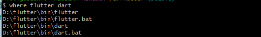 通过命令行运行where flutter dart需要保证flutter/bin命令在最前面
